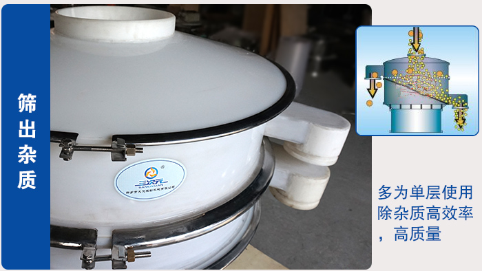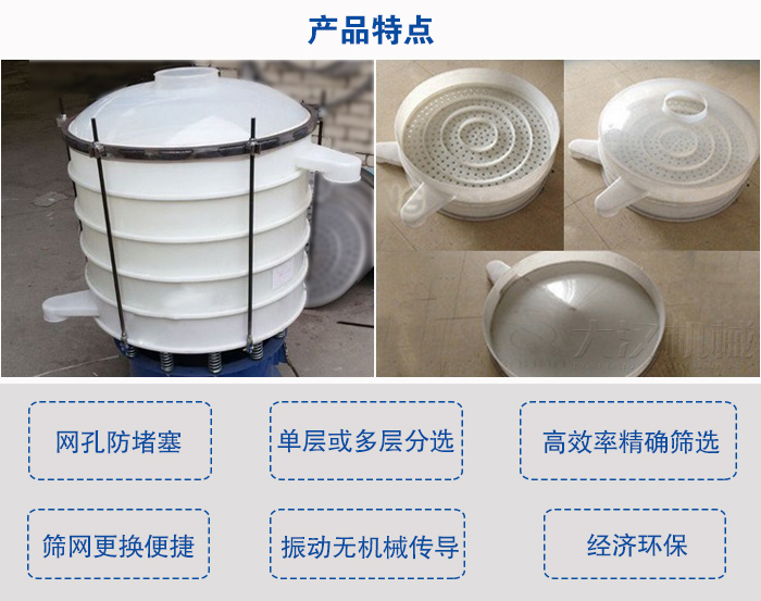 所有進機物料自動排放,機內無存料。同等篩面塑料振動篩比其他類型篩機有更大容量。