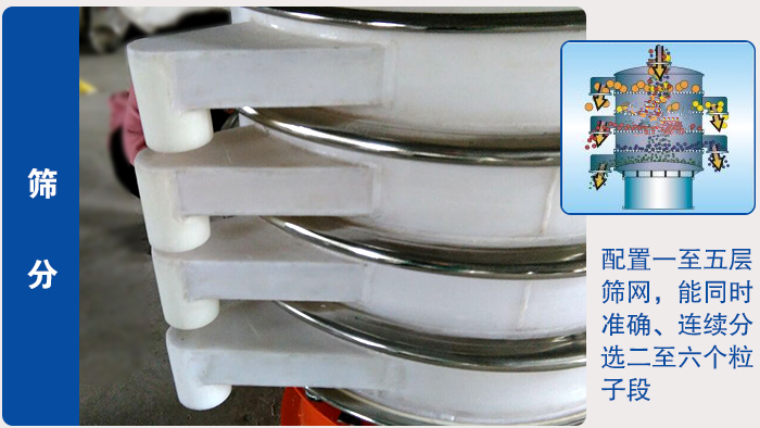 篩分就是把固體顆粒分成大小相等的不同粒子組。單臺系列篩分機可配置一至五層篩網,能同時準確、連續分選二至六個粒子段;分級精度達95%以上。