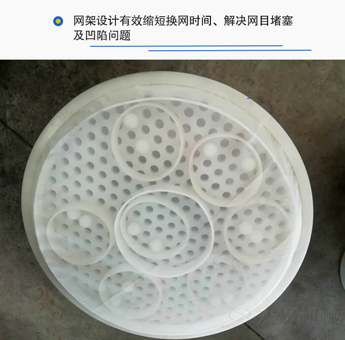 5、網架設計有效縮短換網時間、解決網目堵塞及凹陷問題,清洗方便,操作簡單;