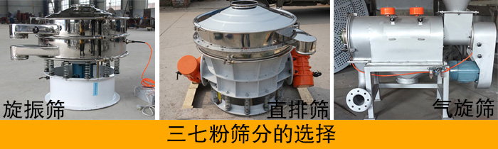 保證中藥的質(zhì)量是篩分作業(yè)的關(guān)鍵因素,對于三七粉來說也不例外。為了保證三七粉的質(zhì)量,大漢機(jī)根據(jù)三七粉的特點(diǎn)研究了不同的振動(dòng)篩,以滿足不同的篩分需求,主要是以下三種設(shè)備:超聲波振動(dòng)篩、氣旋篩和直排篩。