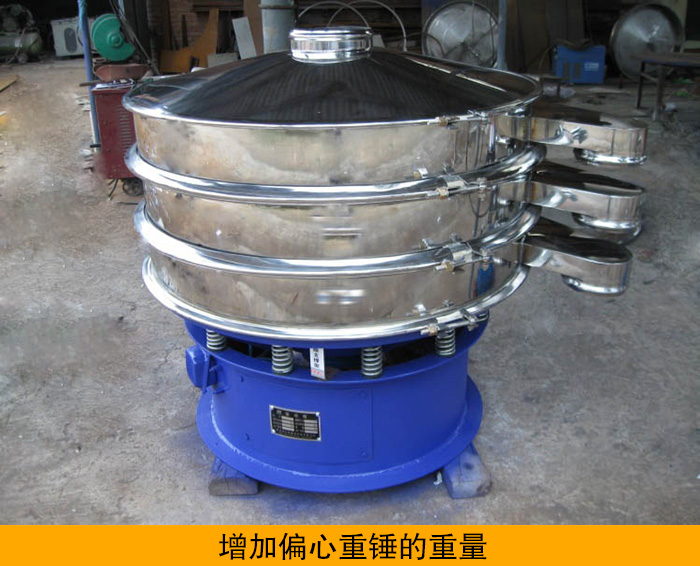 增加偏心重錘的重量,就可以增加整機的激振力,用戶可以根據(jù)振動篩的層數(shù),不同的物料比重,按照操作說明規(guī)范適量的增加重錘的重量,從而使振動篩和物料都能達到自己想要的篩分效果。