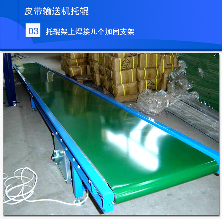 以減小此處托輥架跨距,使得輸送帶運送物料的時候不會下垂于托輥架空內,并造成損壞。可以動手制作幾個U形環把拉緊小車固定在鋼軌上,防止其上下跳動和左右擺動。