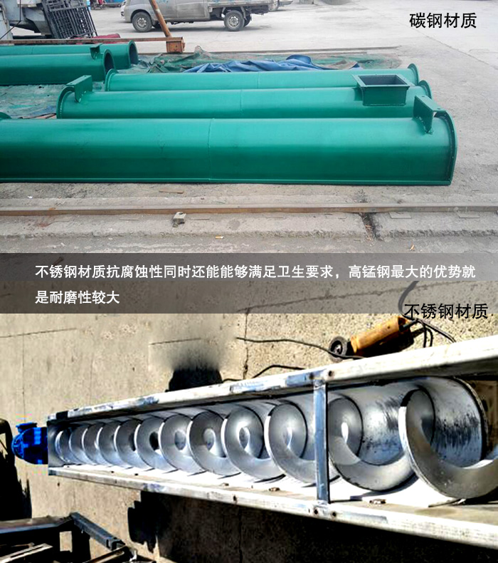 不銹鋼:不銹鋼材質(zhì)是在所有材質(zhì)為特殊的,其特殊之處就是能夠抗腐蝕性同時(shí)還能保持一定的衛(wèi)生,能夠滿足食品,藥品等行業(yè)的衛(wèi)生標(biāo)準(zhǔn)其有不銹鋼無(wú)軸螺旋輸送機(jī)。