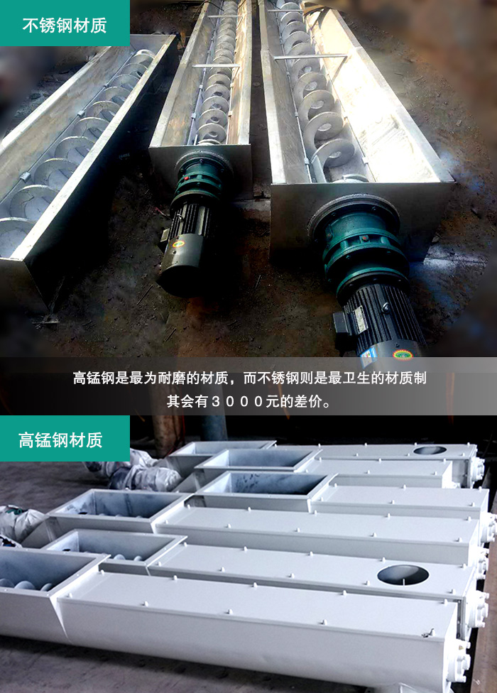 其產品來自于新鄉大漢機械有限公司,新鄉大漢的產品在生產時使用了,市場上好的高錳鋼和不銹鋼材質而成,高錳鋼是為耐磨的材質,而不銹鋼則是衛生的材質制。運用好材質才會有好質量。與此同時GL型螺旋輸送機就會有3000元的差價。
